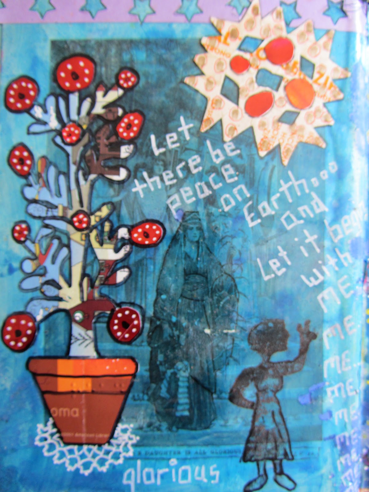DeleteLovely work, annie! I've looked closely at all the pages and admired the vibrant art in them all. I especially love the tree, the stars and the lady, and the quote, great words.
